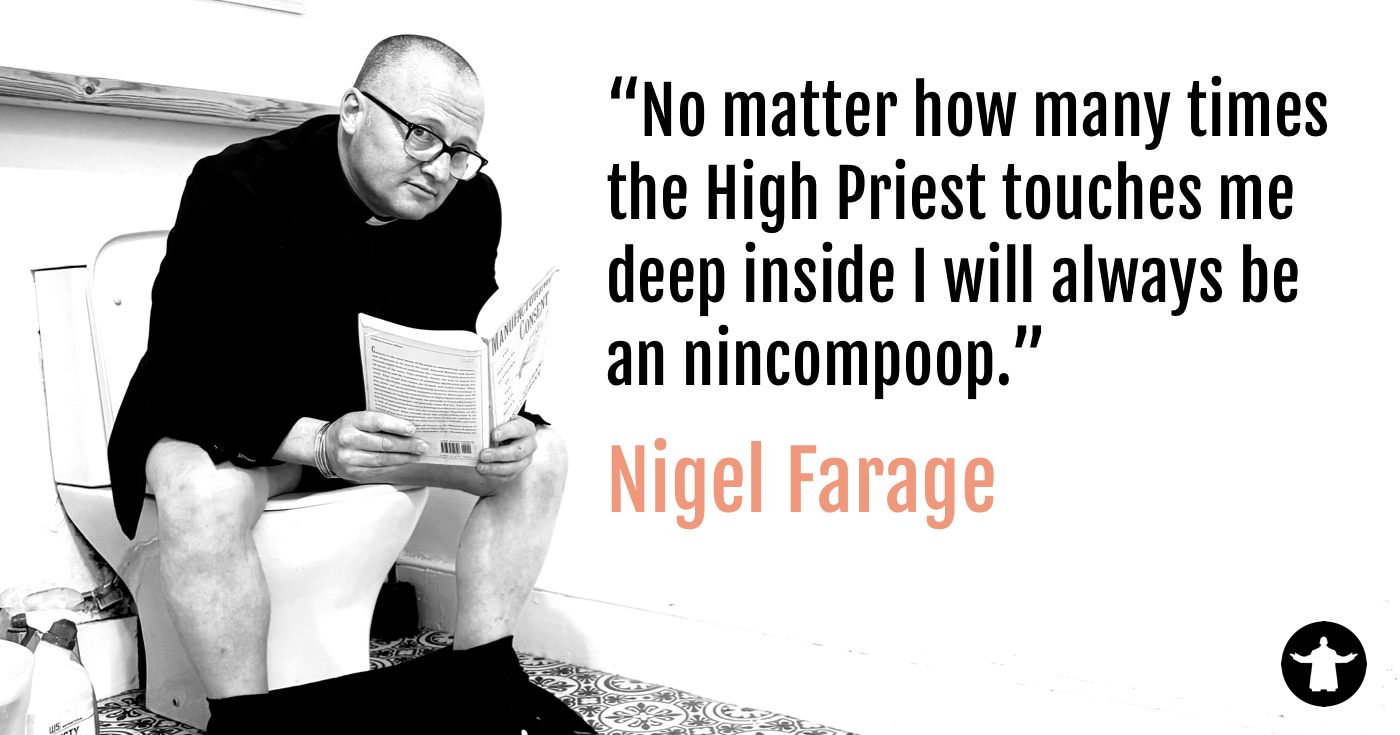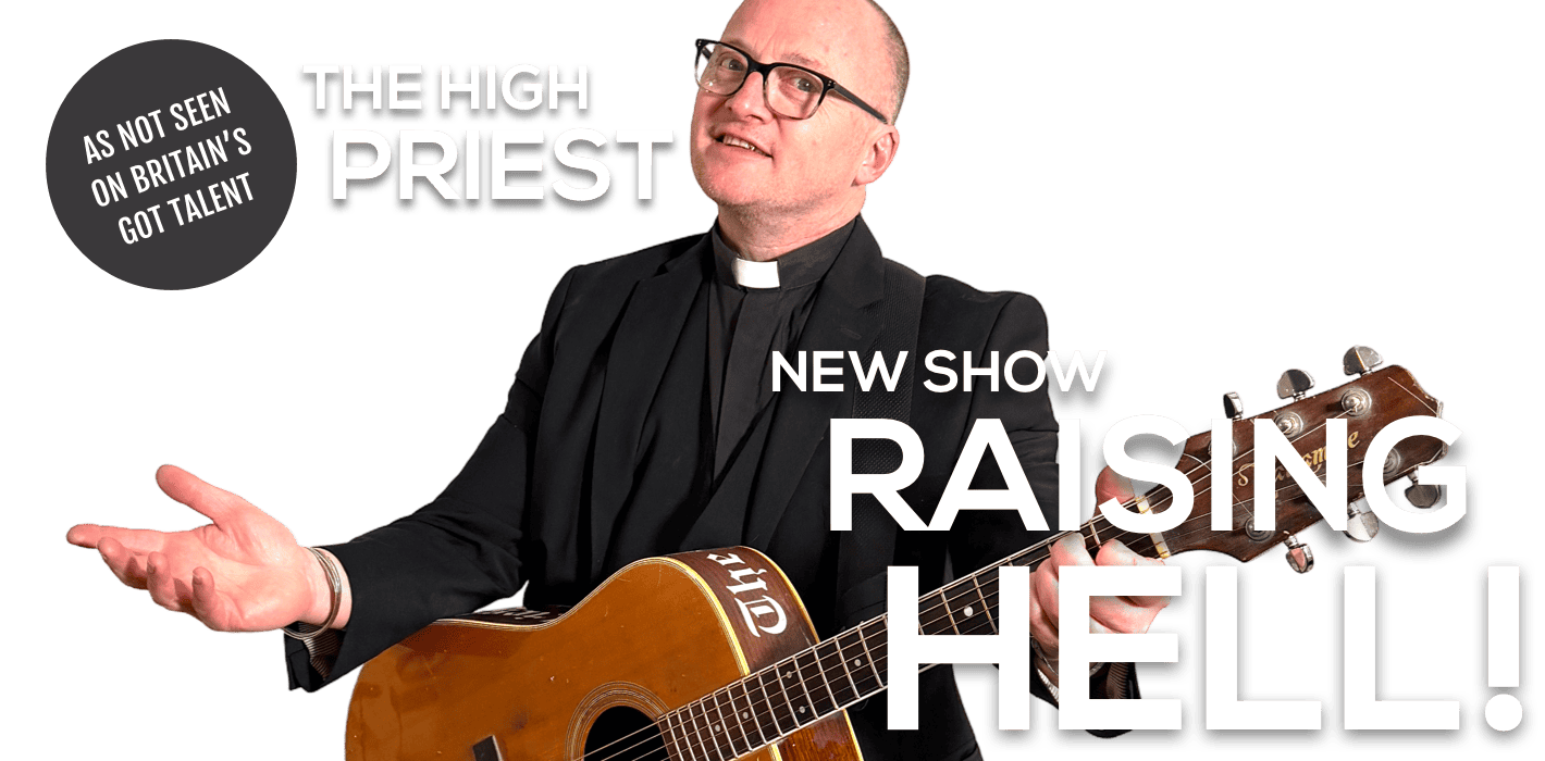Straight out of the deep south of England, Folkestone twinned with Alabama, the High Priest spreads the love and touches all deep inside regardless of colour, creed, gender or origin… But he does draw the line if you appeared on Britain’s Got Talent. After being thrown out of the church for using profanity in services, sampling the blessed wine a little too often and touching single mothers deep inside, he now performs his services in pubs, clubs, venues… and toilets, basically anywhere that will let him inside.