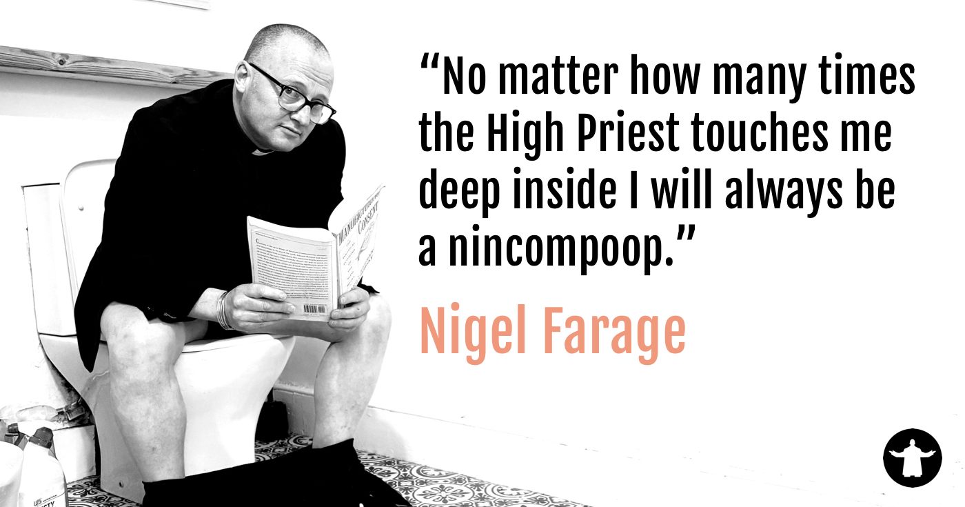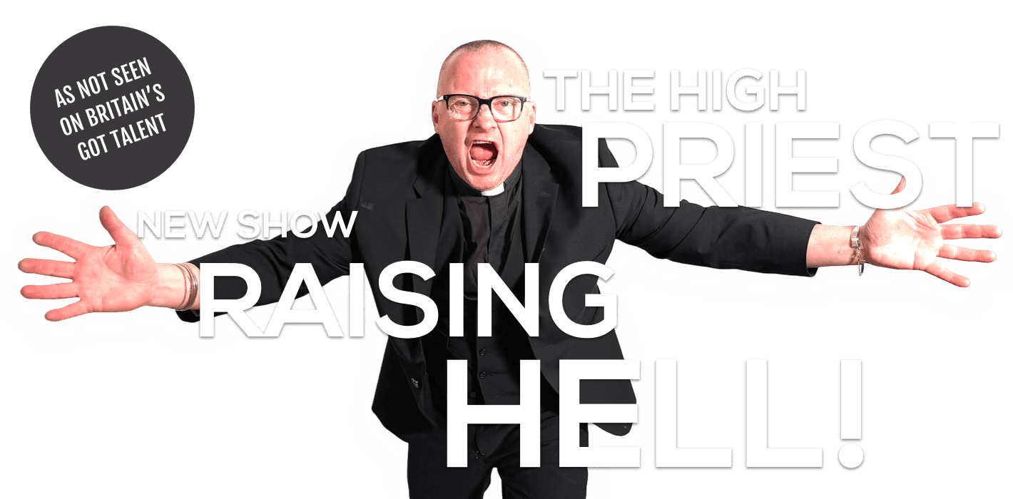 Straight out of the deep south of England, Folkestone twinned with Alabama, the High Priest spreads the love and touches all deep inside regardless of colour, creed, gender or origin… But he does draw the line if you appeared on Britain’s Got Talent. After being thrown out of the church for using profanity in services, sampling the blessed wine a little too often and touching single mothers deep inside, he now performs his services in pubs, clubs, venues… and toilets, basically anywhere that will let him inside.